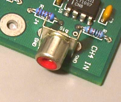 If the board is placed in the option plastic box you will need to use either the .156 Molex or terminal block screw input connector option. There is not enough room in the box to use the RCA jack and mating plug.